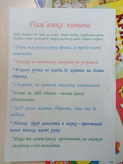 Звернули увагу на правила поведінки читачів у бібліотеці та звісно, як правильно потрібно користуватися книгою, чому надзвичайно важливо її берегти. З’ясували чому корисно читати, які бувають книги і з якого матеріалу вони виготовлялись багато століть тому.