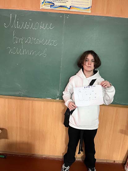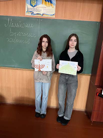 На годині спілкування під символічною назвою “Мільйони втрачених життів” ми з учнями 8-Б класу згадали долі невинних людей, які стали жертвами нацистської ідеології, ознайомилися з літературою, пристяченою цим трагічним подіям, зокрема: «Материнська відвага» М. Левін, «Щоденника Анни Франк», «Вибір» Е.Егер. Також, діти підготували ілюстрації присвячені Голокосту.