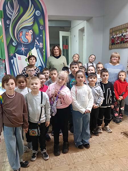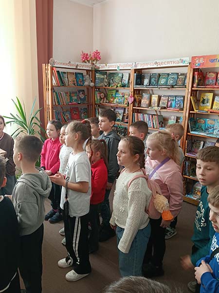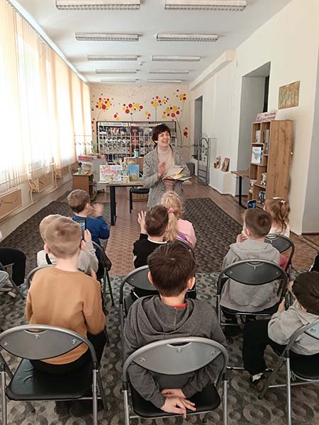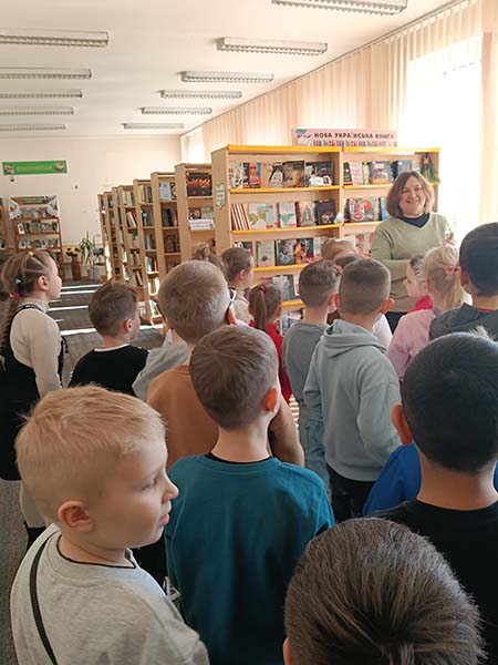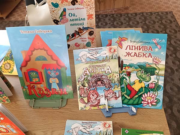 Де нас привітно зустріли бібліотекарі Ірина Боришкевич, Світлана Ткачук та рівненська дитяча письменниця Тетяна Собецька – переможниця VI Всеукраїнського літературного конкурсу ім. Леся Мартовича – 2-ге місце у номінації «Дитяча Книга» (2022) та членкиня Рівненської обласної організації Національної спілки письменників України у 2019 році.